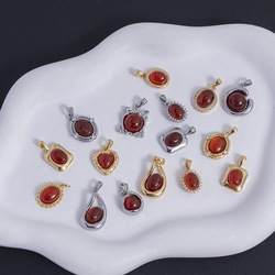 2025时尚新设计批发18k金填充不规则红玛瑙石铜吊坠Diy饰品制作