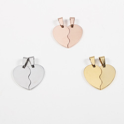 情人永远个性不锈钢两部分心形情侣拼图吊坠24x20mm毫米魅力项链饰品